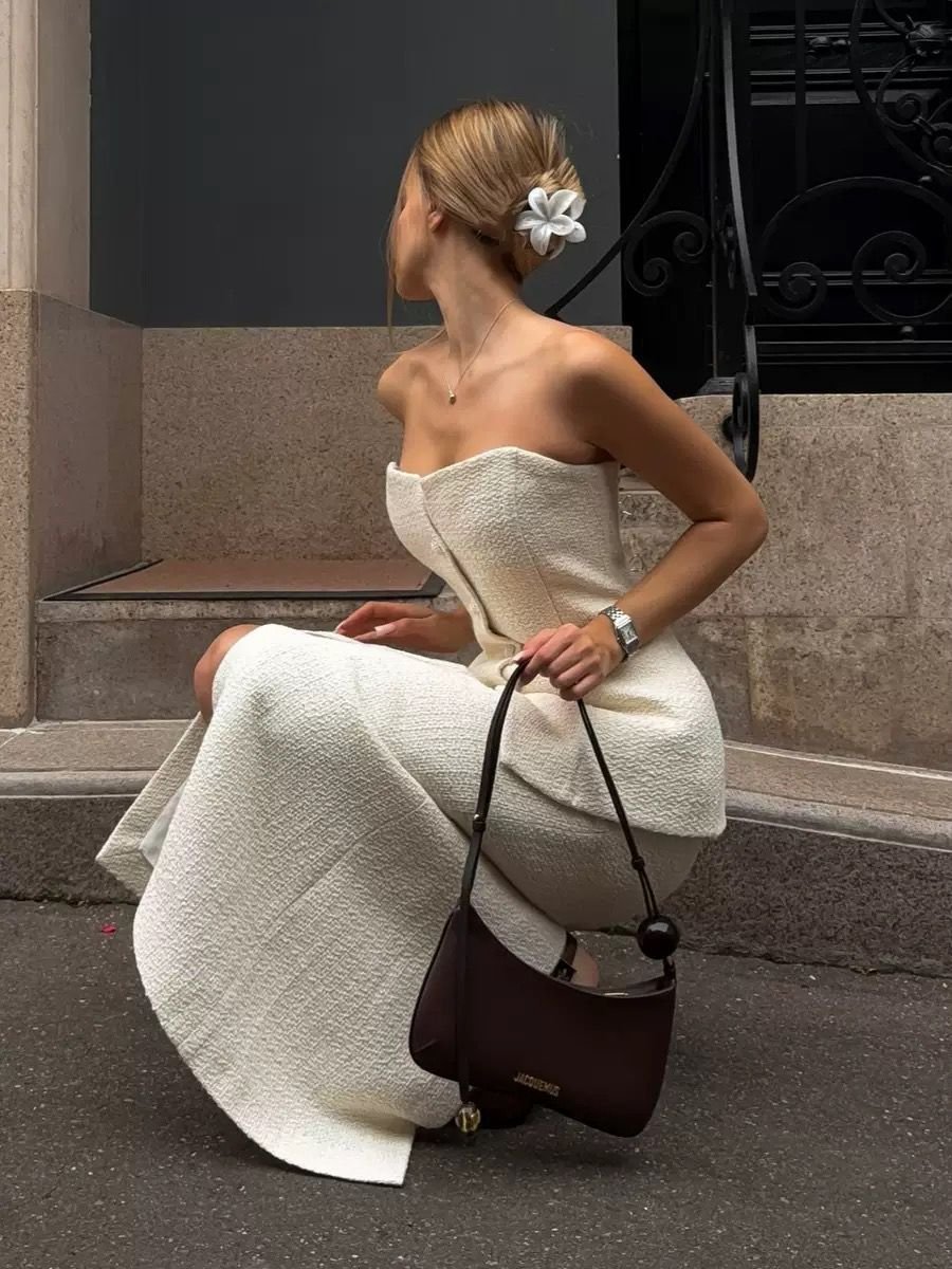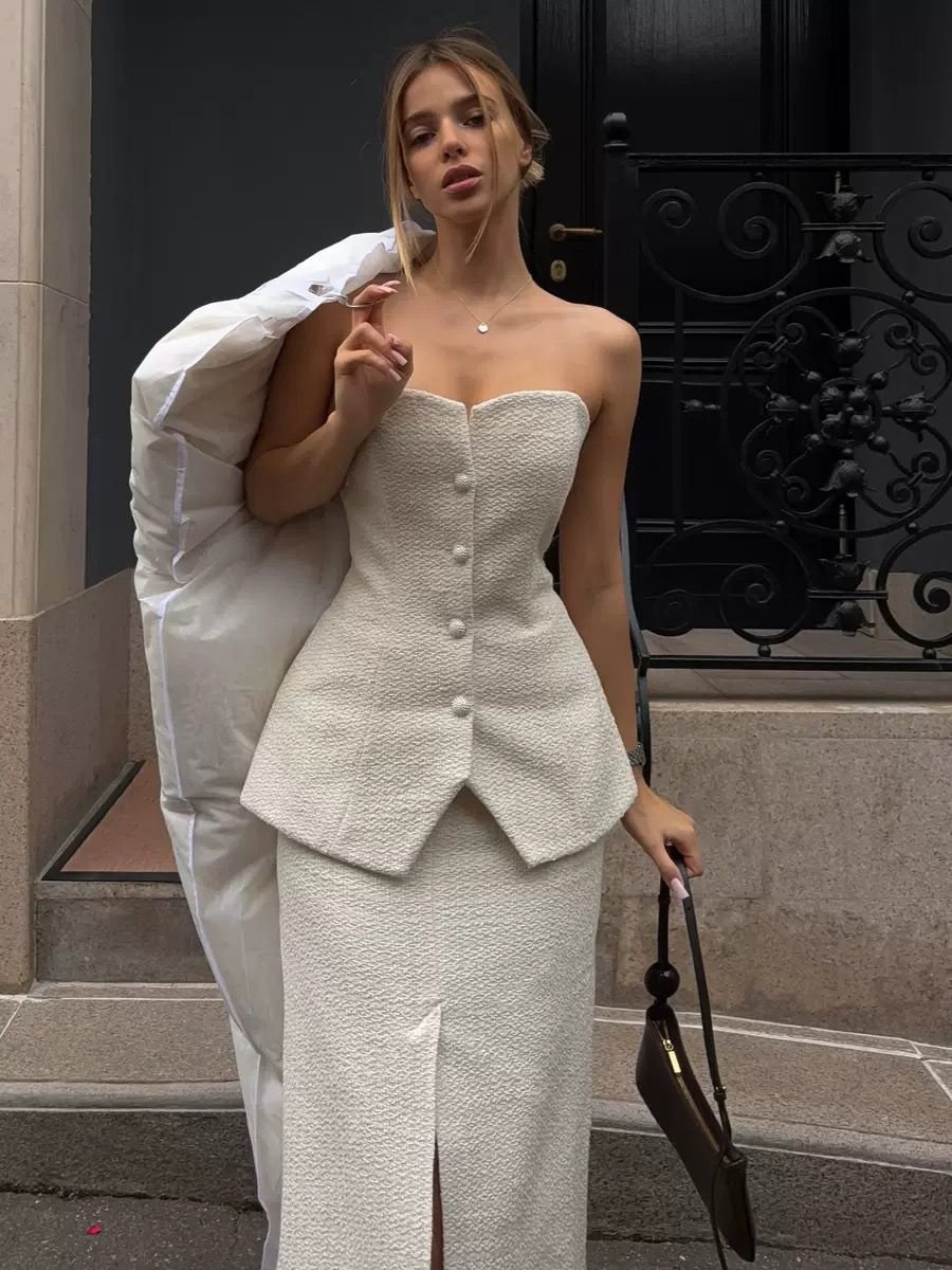 Cream Strapless Waist-Cinched Two-Piece Set